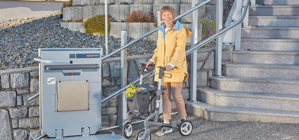 The Ascendor platform stairlift has proven itself in both public and private use: Particularly robust materials and user-friendly technology make it an all-purpose solution for wheelchair users and people with other walking disabilities – whether with a rollator, as a seat lift (thanks to the fold-out seat) or for convenient transport of heavy objects.
